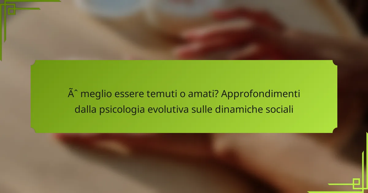 La psicologia evolutiva suggerisce che essere temuti può portare a conformità a breve termine, mentre essere amati favorisce la cooperazione a lungo termine. Comprendere queste dinamiche aiuta a navigare efficacemente le interazioni sociali moderne. La ricerca indica che gli individui che bilanciano paura e amore tendono a costruire legami sociali più forti. Ad esempio, i leader che ispirano affetto sono spesso più riusciti nel mantenere la lealtà rispetto a quelli che si affidano esclusivamente all’intimidazione. Questa intuizione rivela che le connessioni emotive migliorano la coesione di gruppo e la collaborazione in vari contesti sociali.