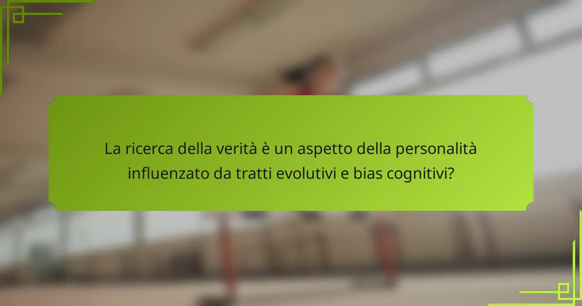 I tratti evolutivi influenzano significativamente il comportamento di ricerca della verità plasmando i bias cognitivi e gli aspetti della personalità. Questi tratti si sono evoluti per migliorare la sopravvivenza, spingendo gli individui a cercare informazioni accurate per prendere decisioni. Ad esempio, una predisposizione alla cooperazione sociale può portare a un maggiore accento sul consenso di gruppo, influenzando come viene percepita la verità. I bias cognitivi, come il bias di conferma, complicano ulteriormente questo aspetto, poiché gli individui possono favorire informazioni che si allineano con le loro credenze esistenti. Comprendere queste dinamiche rivela la complessità della ricerca della verità sia come fenomeno evolutivo che psicologico.